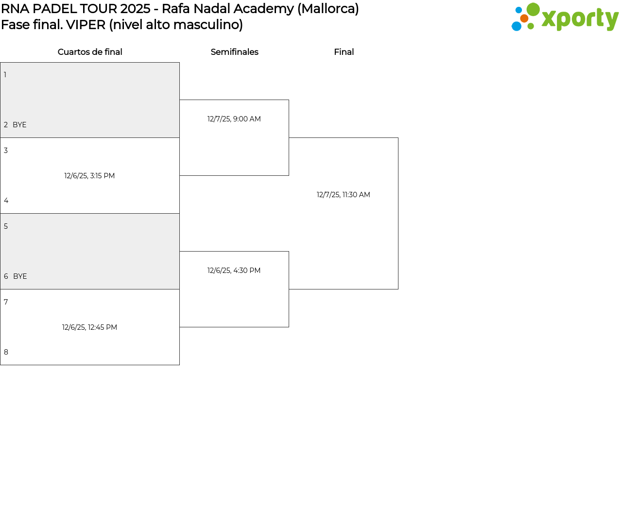 Cuartos de final (1 match/game)