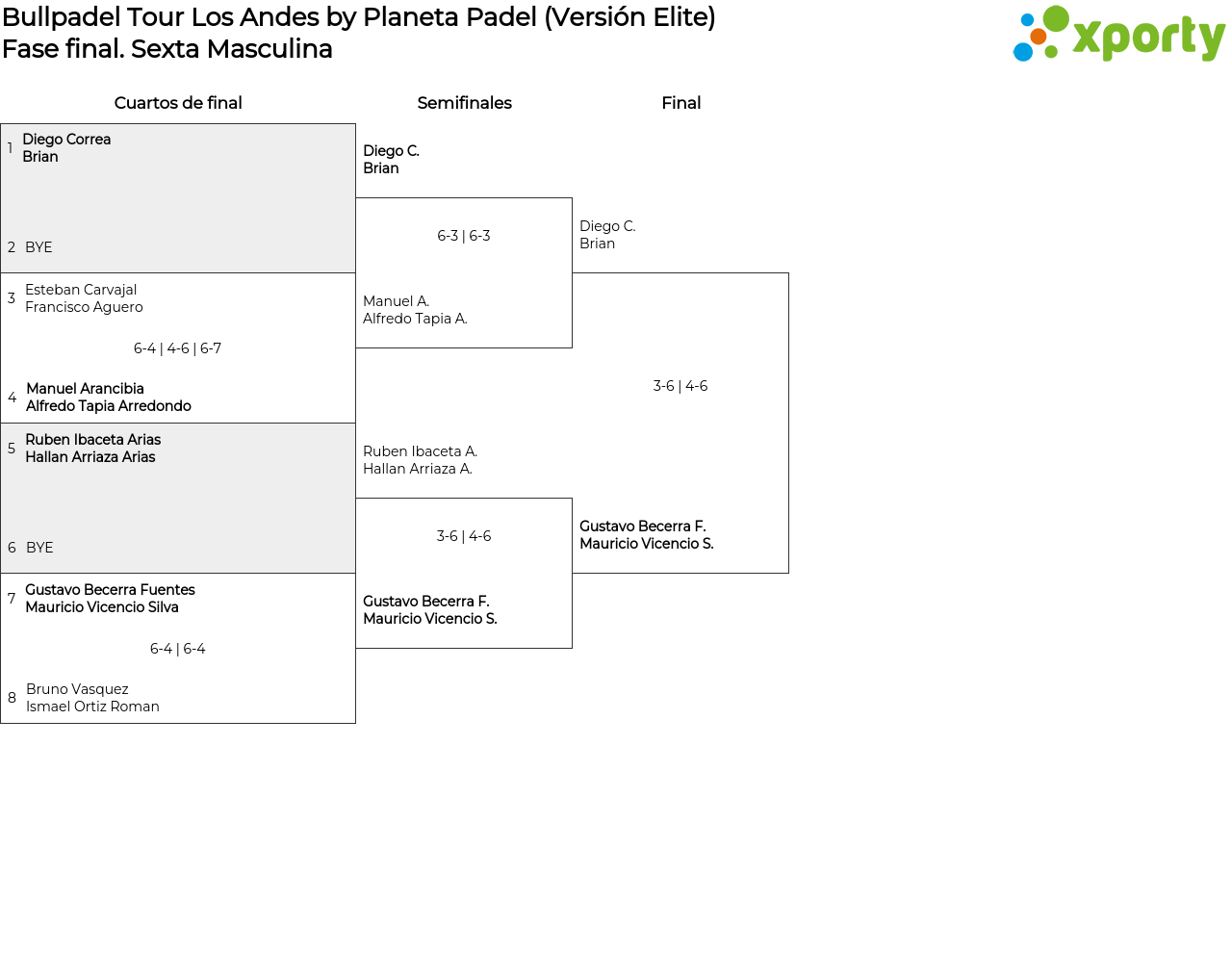 Sexta Masculina main bracket