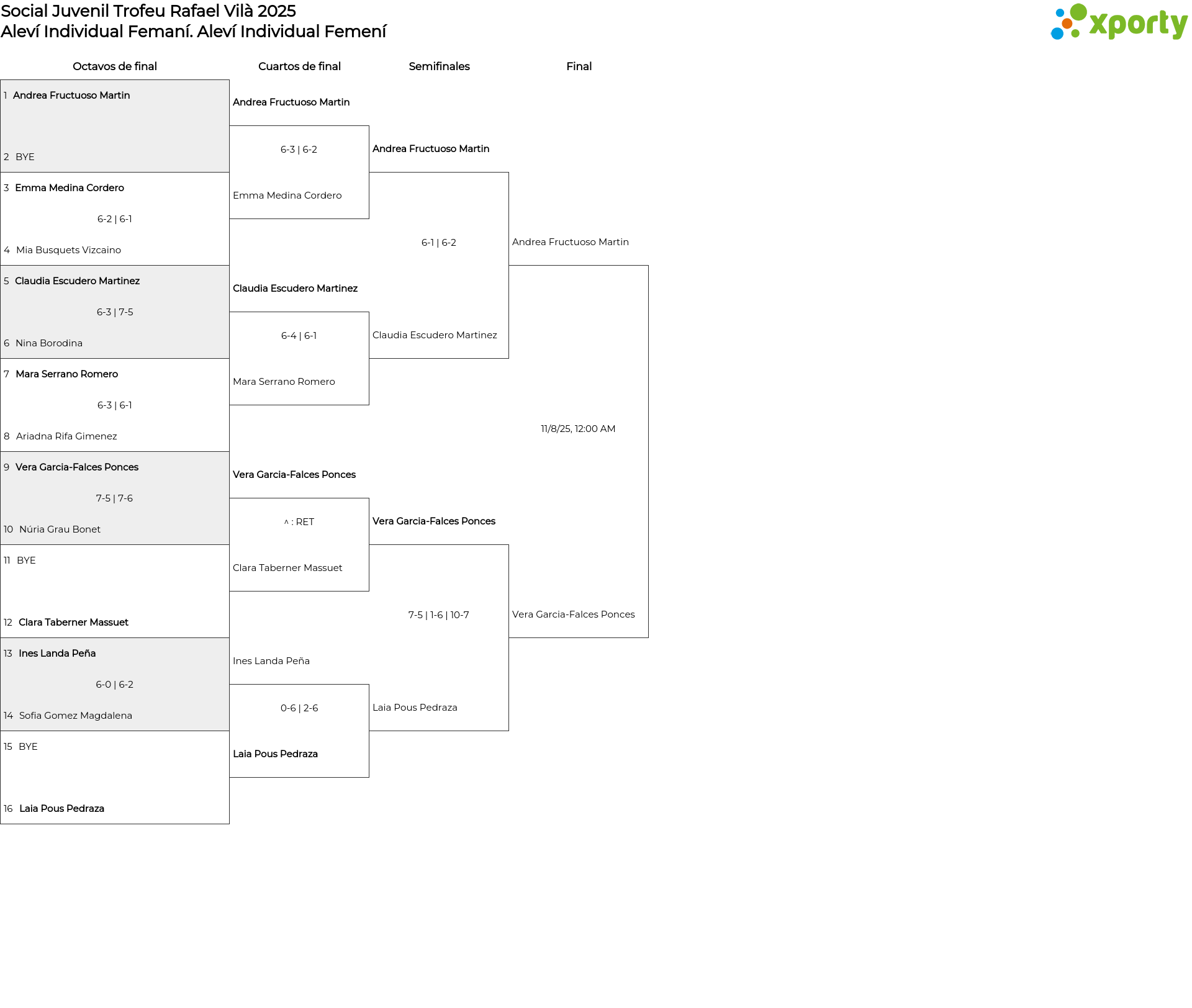 Aleví Individual Femení main bracket