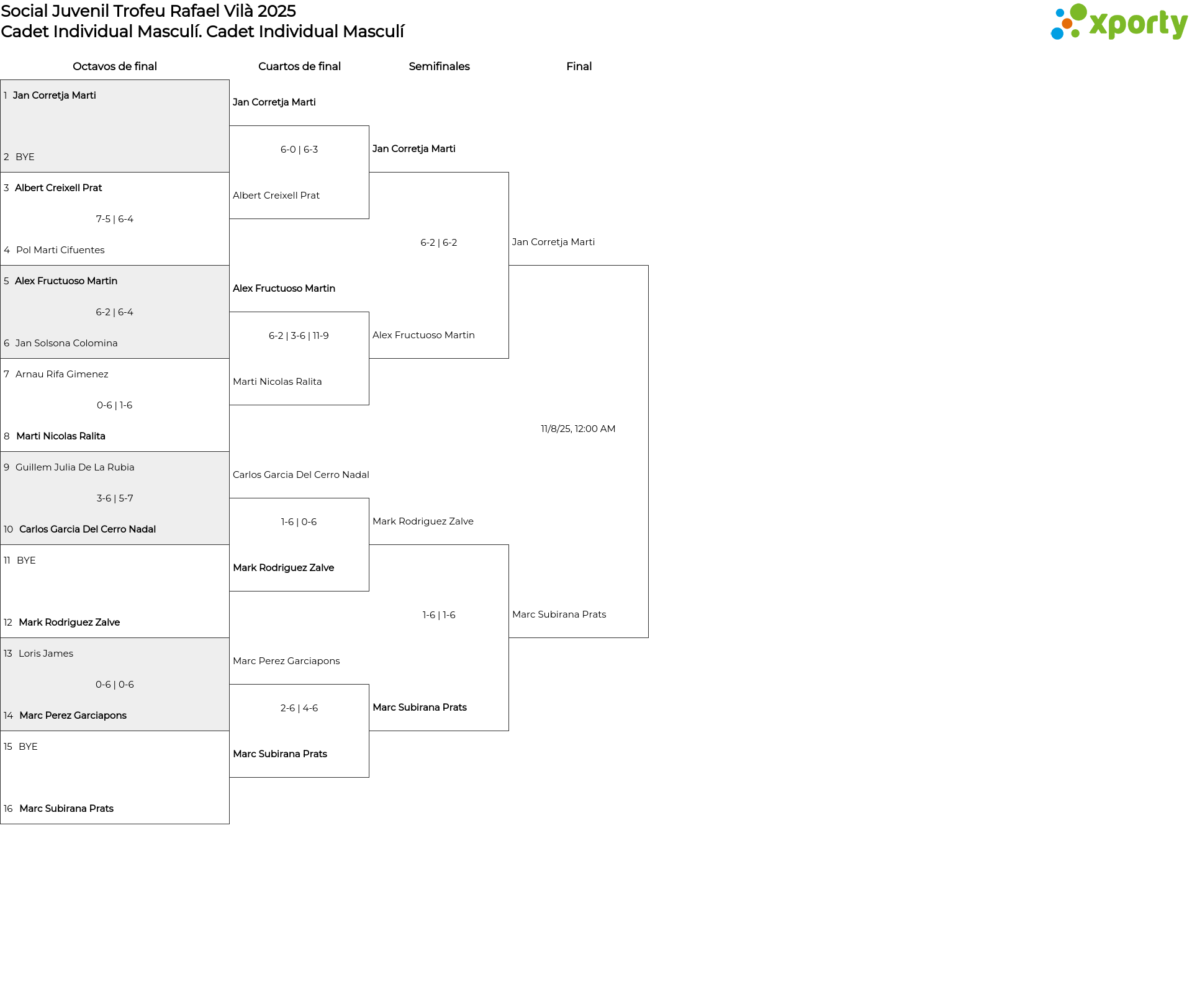 Cadet Individual Masculí main bracket