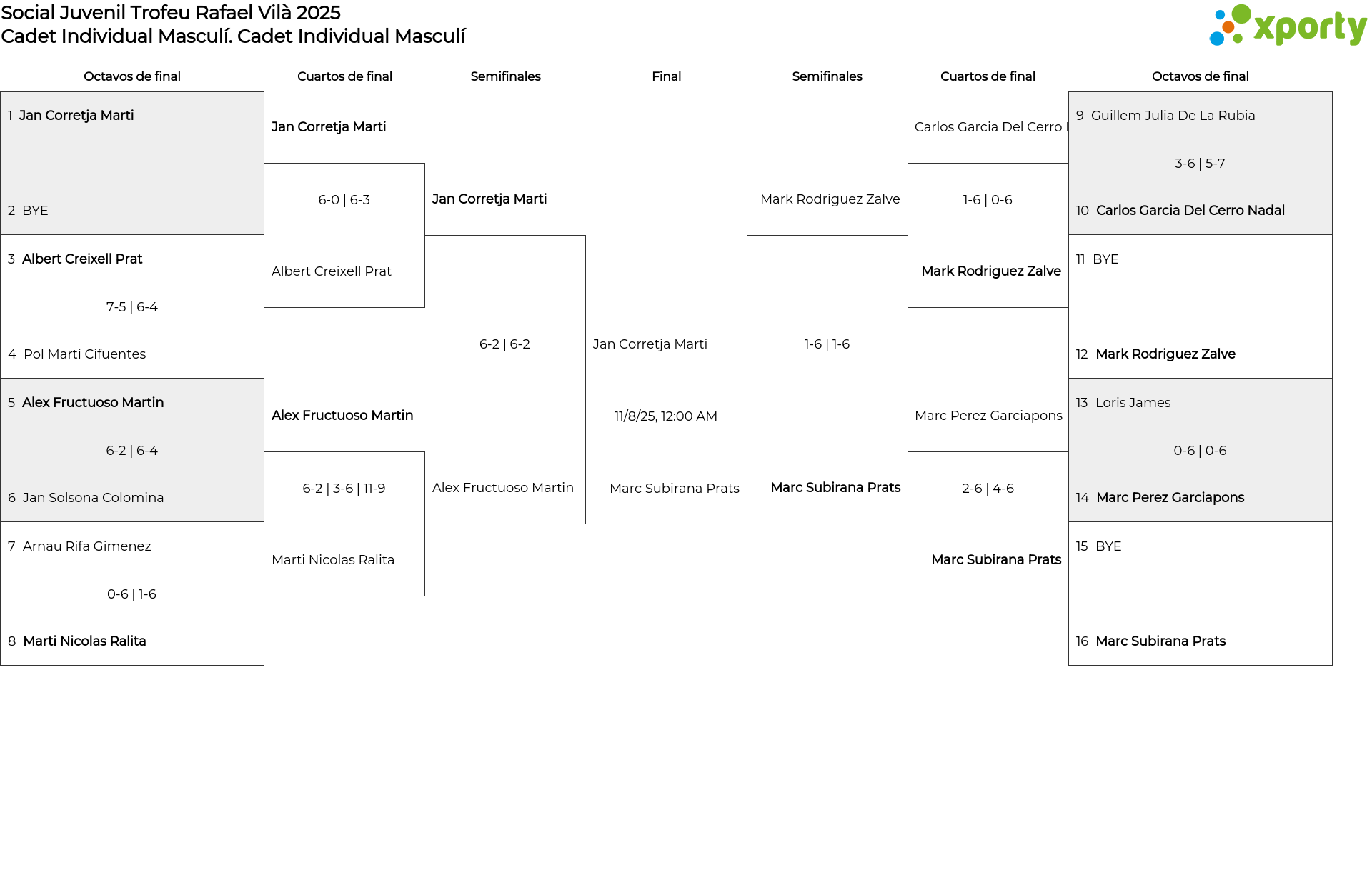 Cadet Individual Masculí main bracket