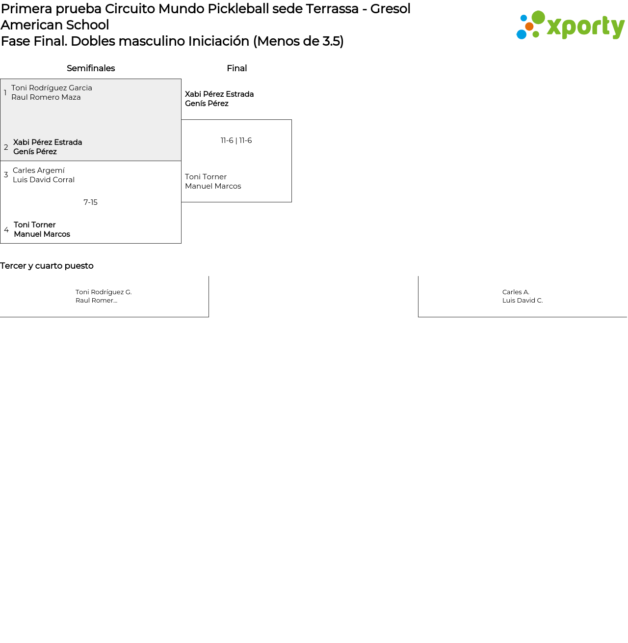 Dobles masculino Iniciación (Menos de 3.5) main bracket