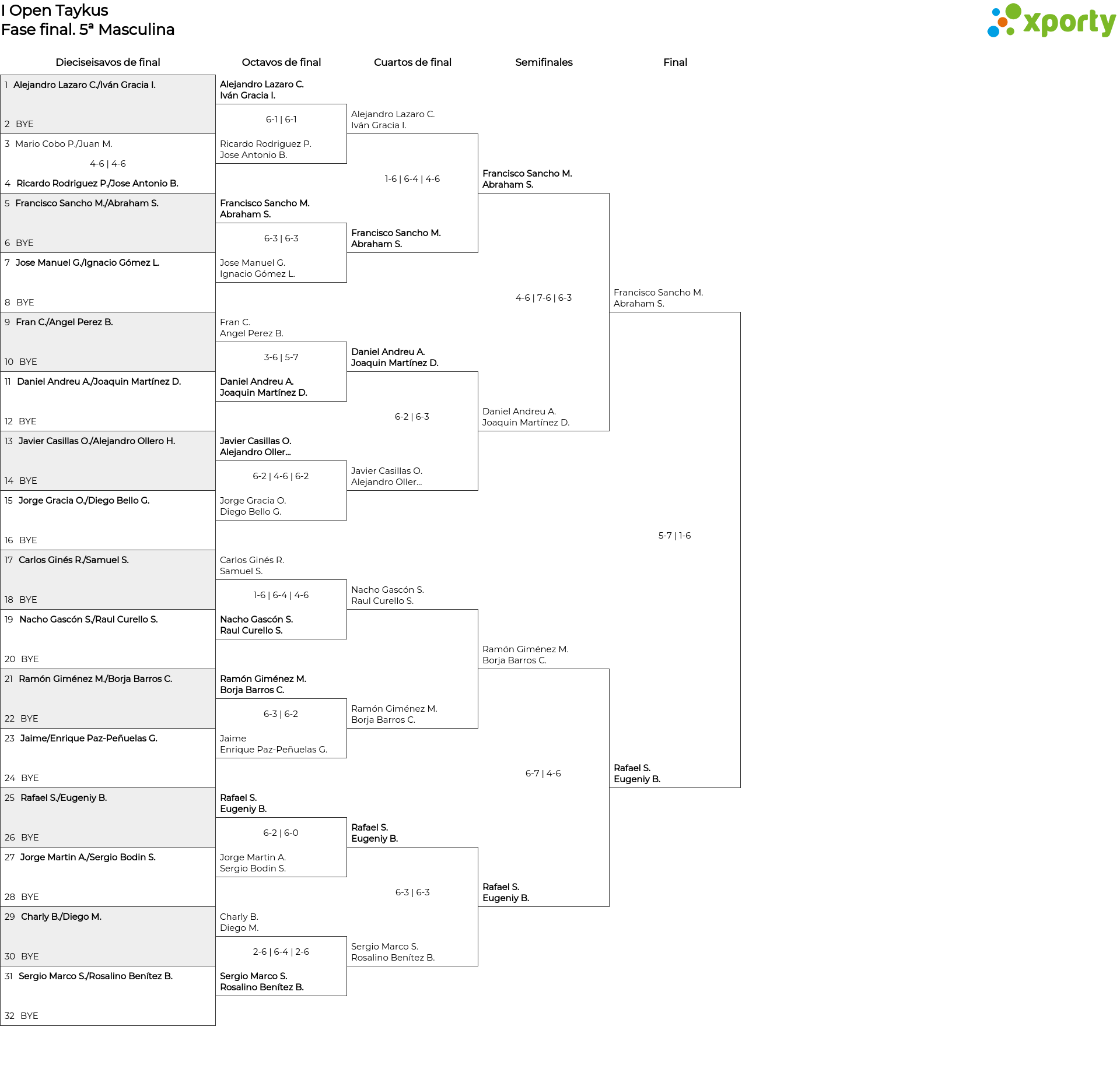 5ª Masculina main bracket