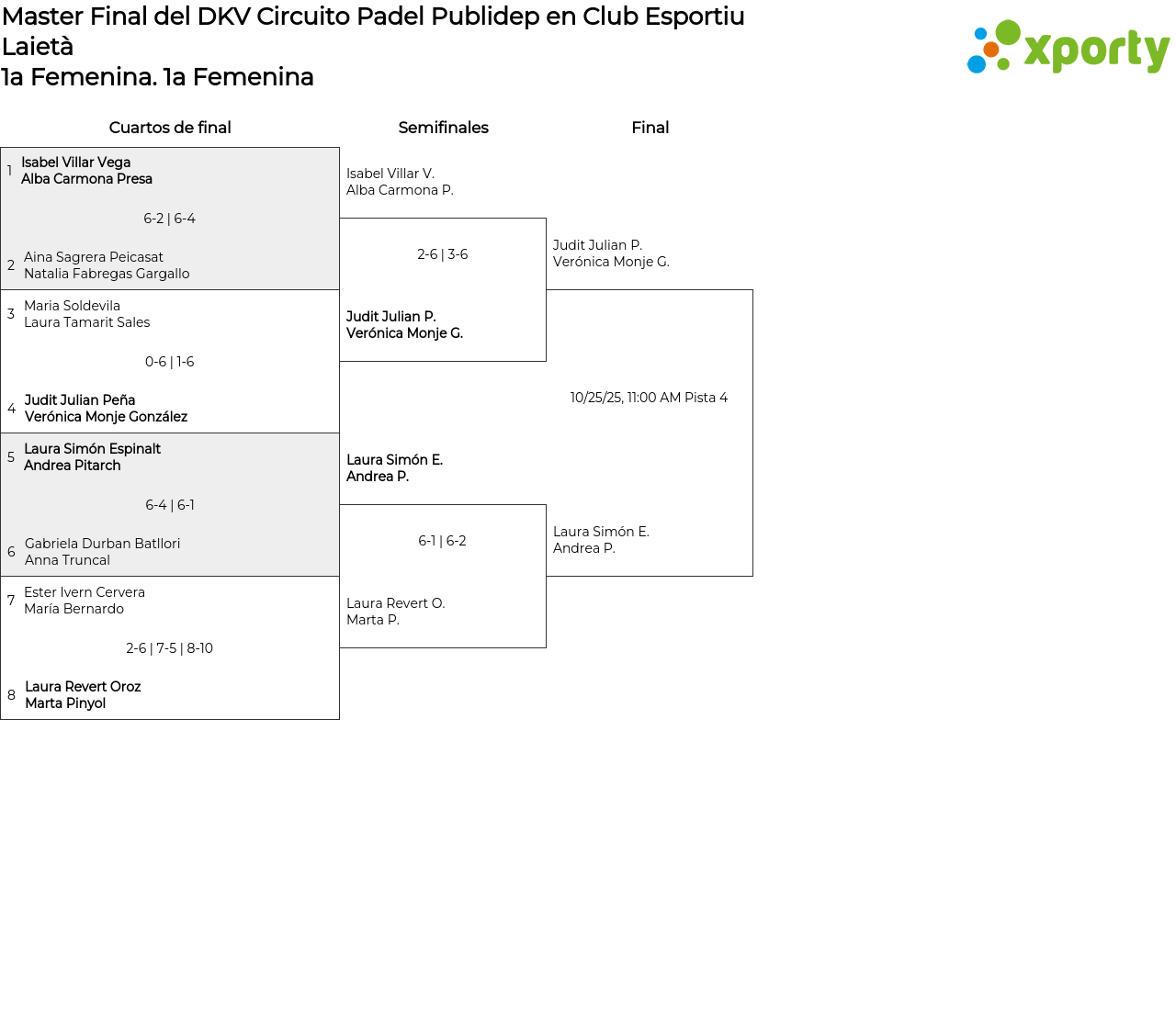 1a Femenina main bracket