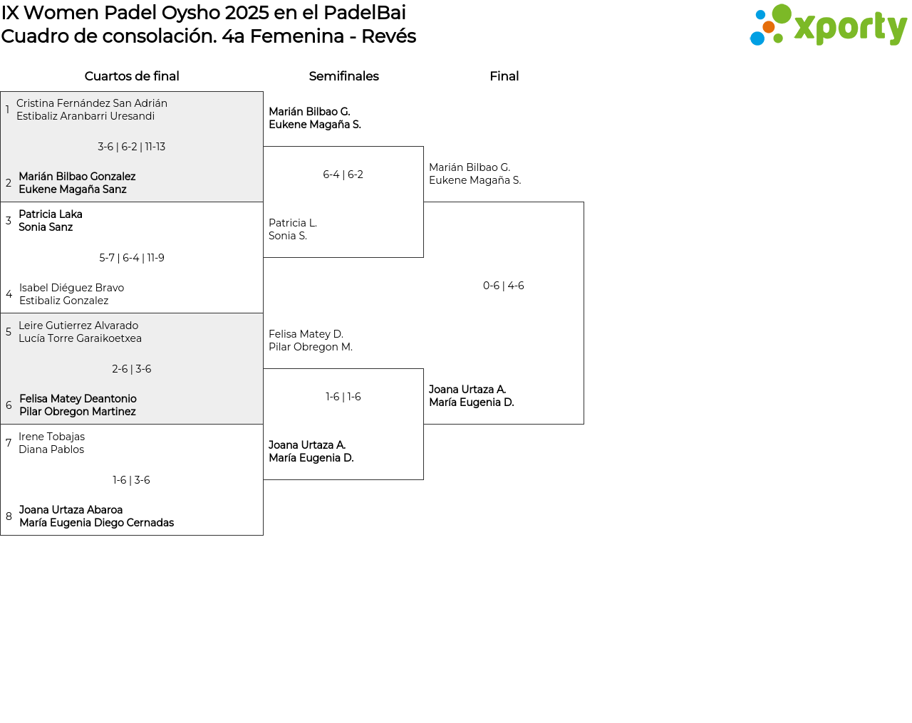4a Femenina - Revés Cuadro de consolación