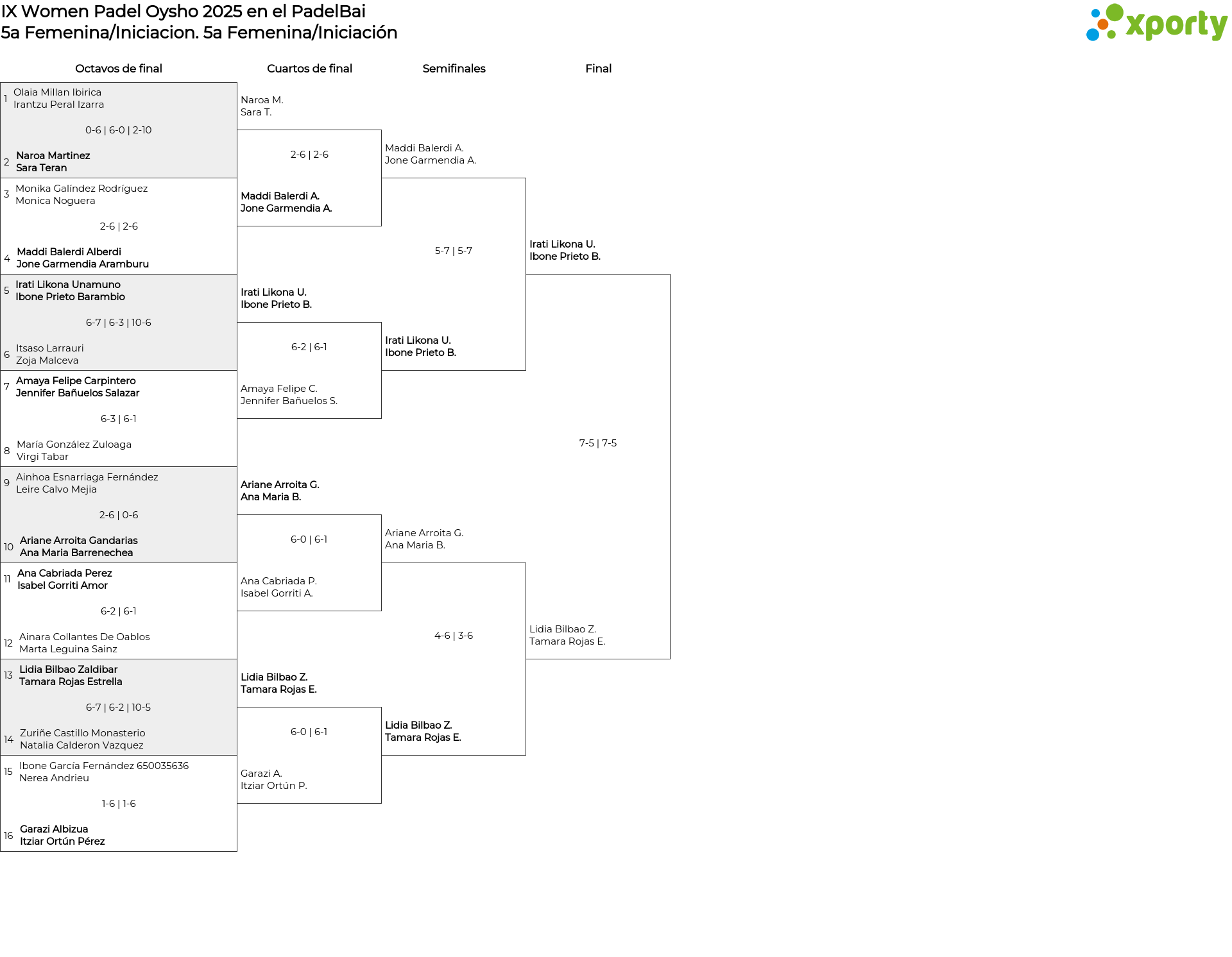 5a Femenina/Iniciación main bracket