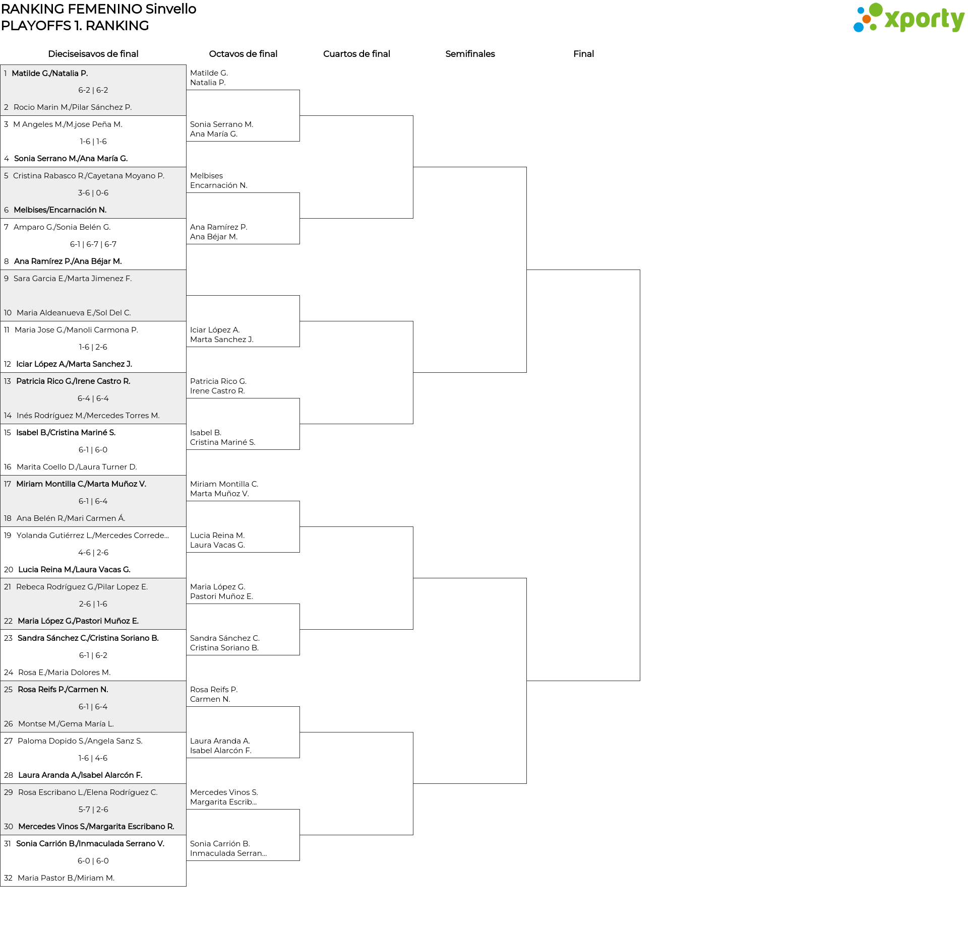 RANKING FEMENINO Sinvello