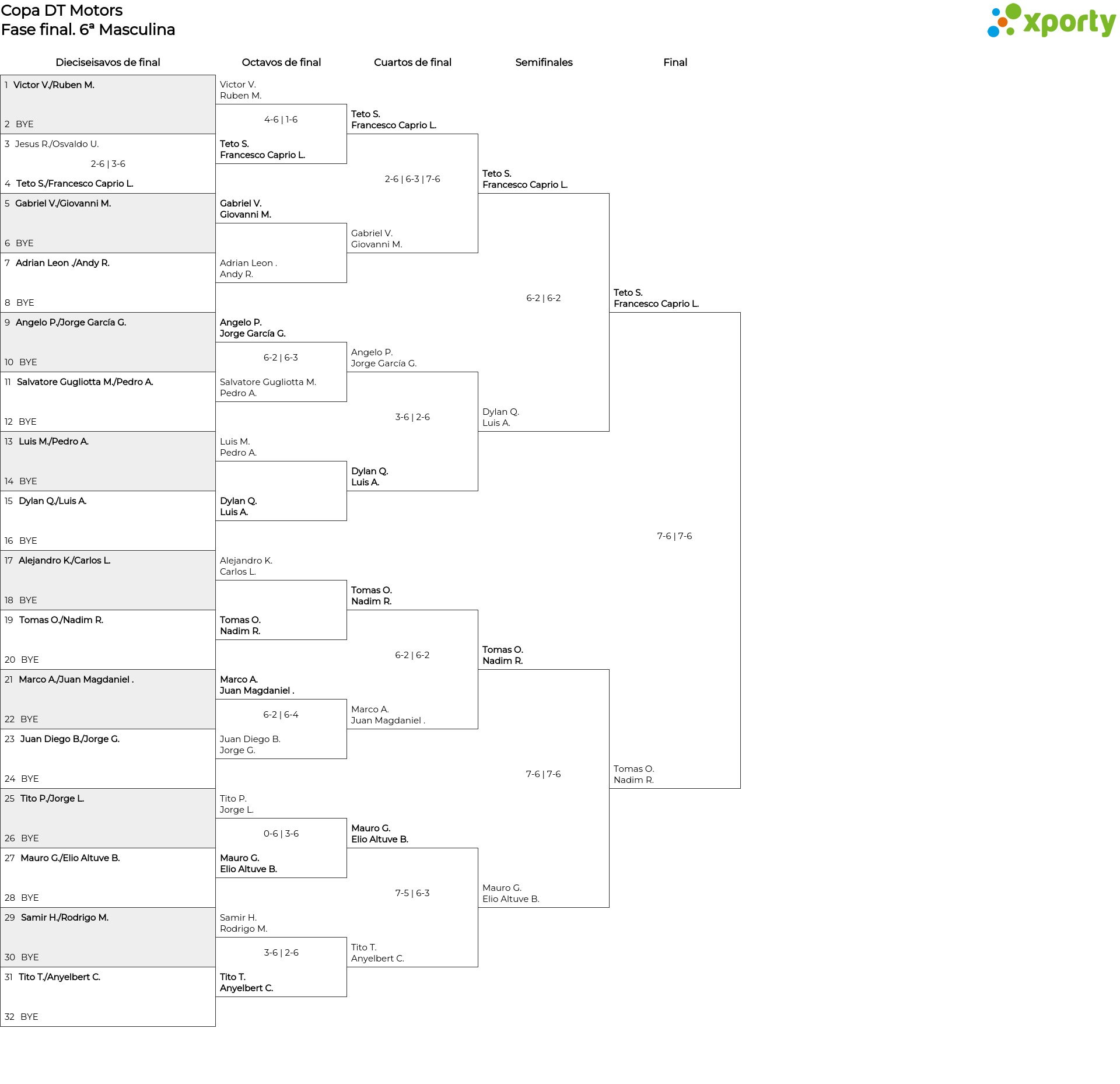 6ª Masculina main bracket