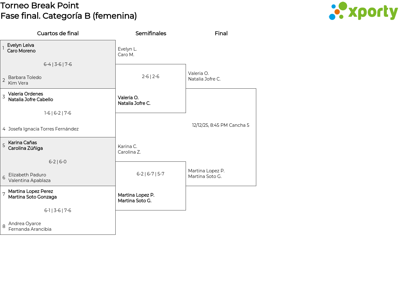 Categoría B (femenina) main bracket