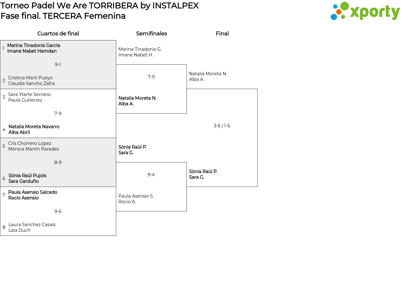 TERCERA Femenina main bracket