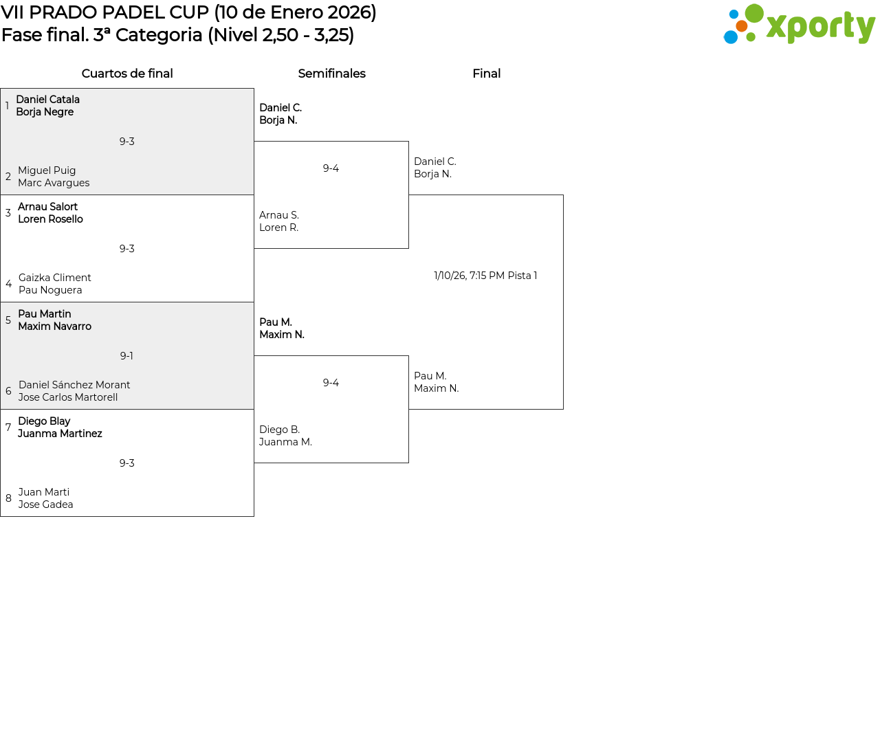 3ª Categoria (Nivel 2,50 - 3,25) main bracket