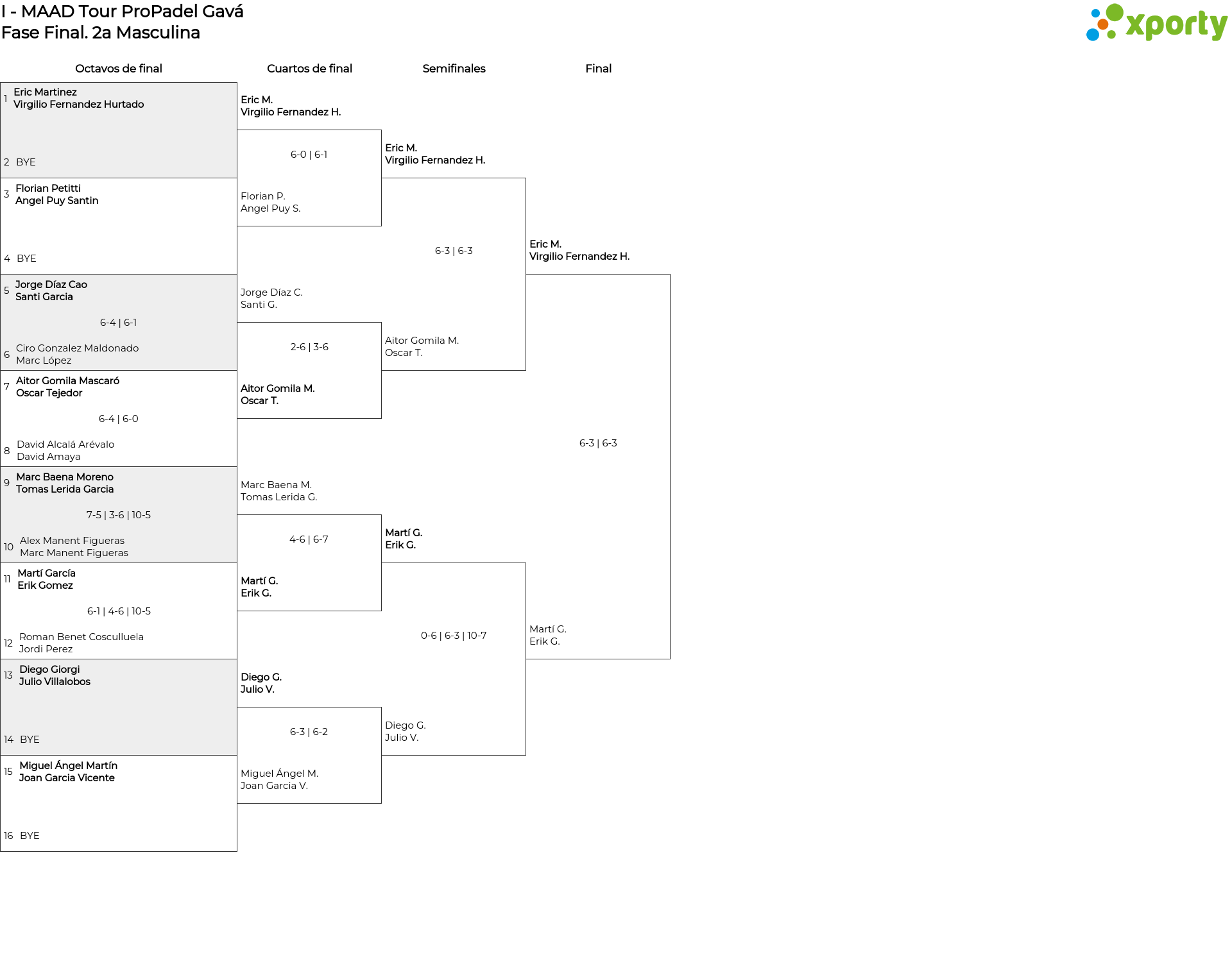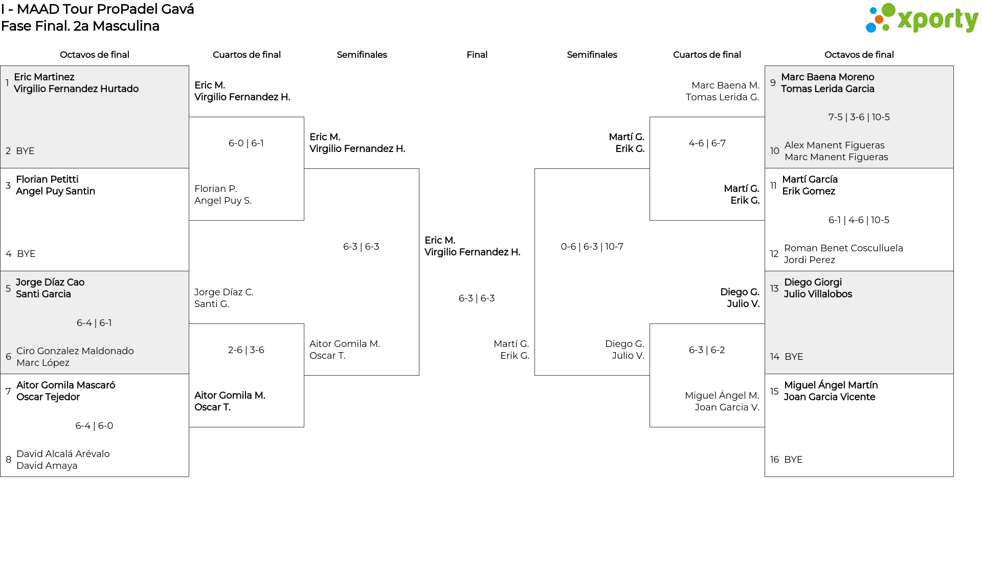 2a Masculina main bracket