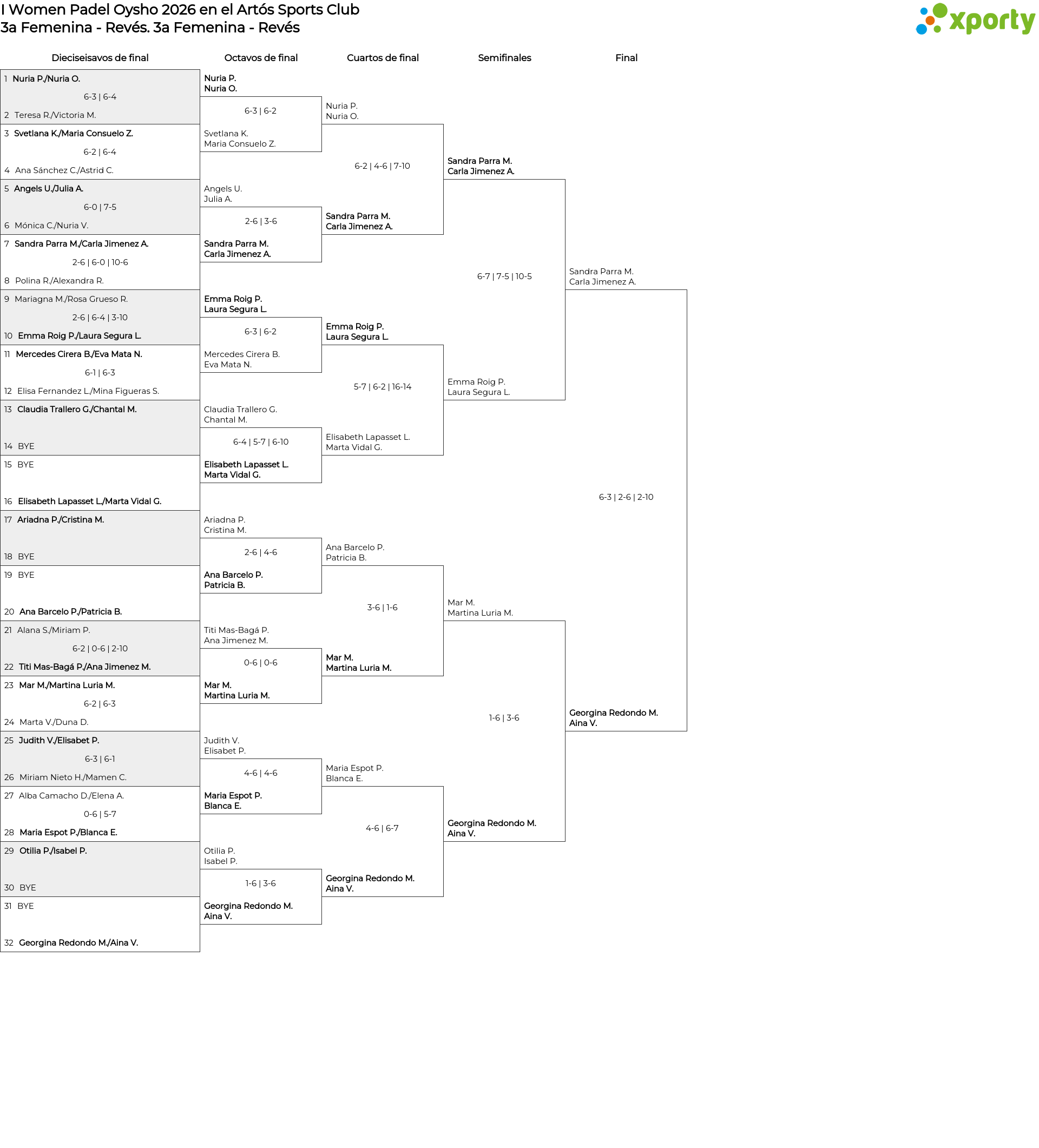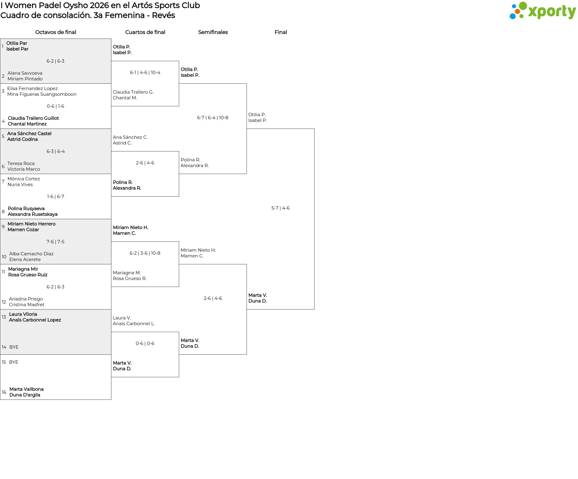 3a Femenina - Revés Cuadro de consolación