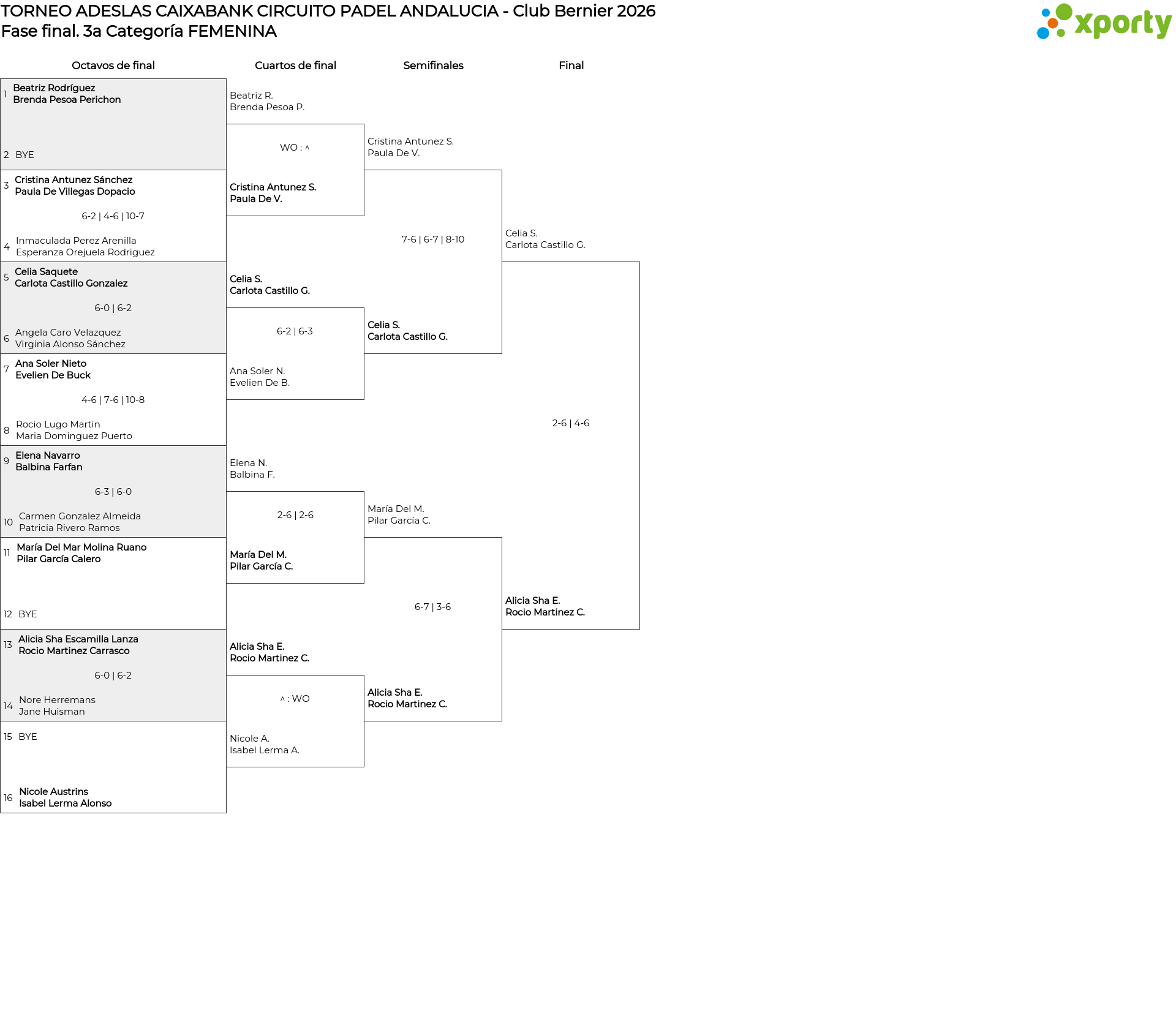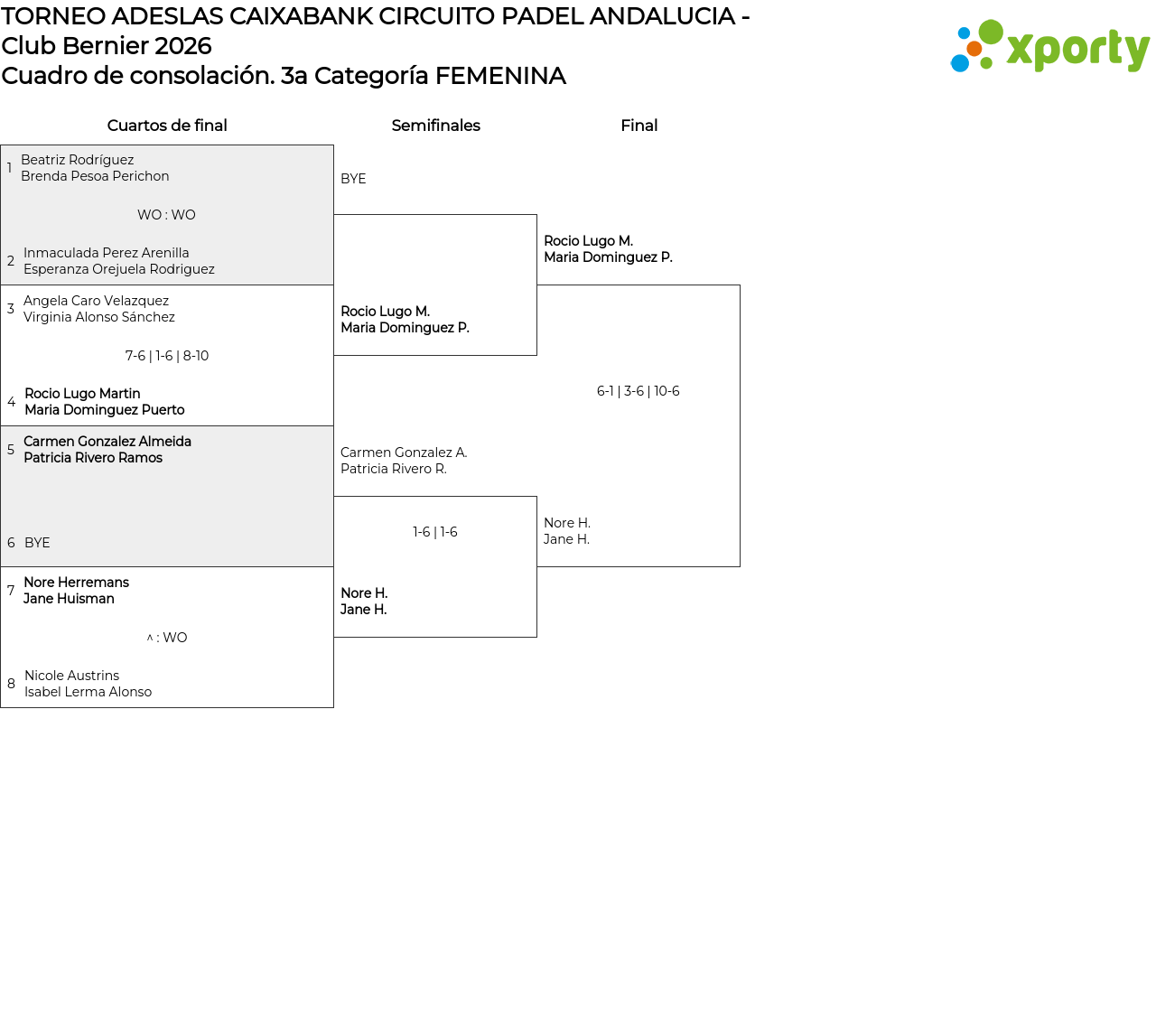 3a Categoría FEMENINA Cuadro de consolación