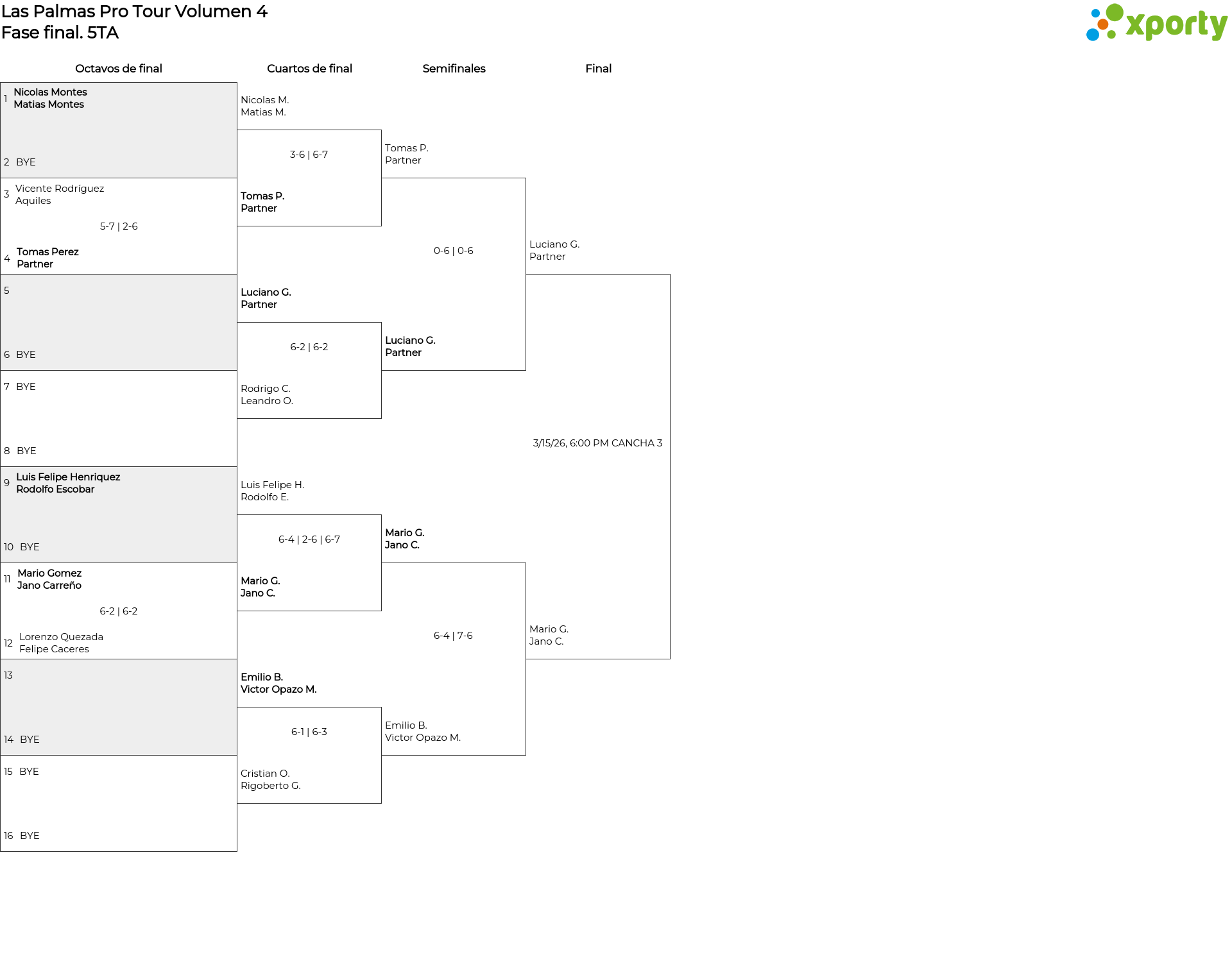 Cuartos de final (1 match/game)