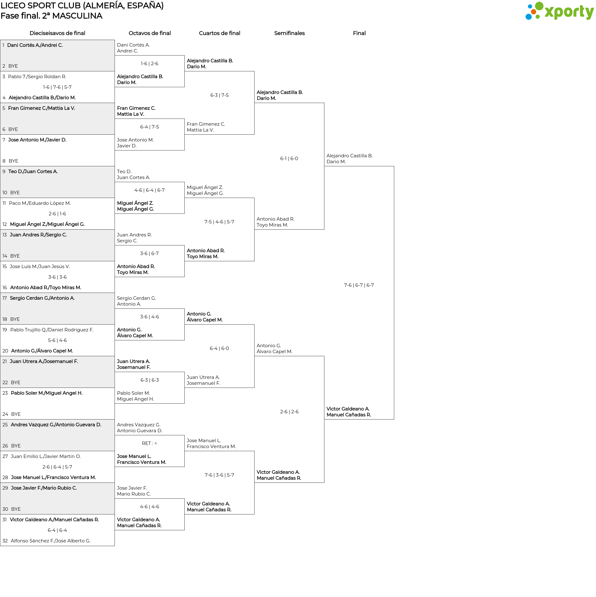 2ª MASCULINA main bracket