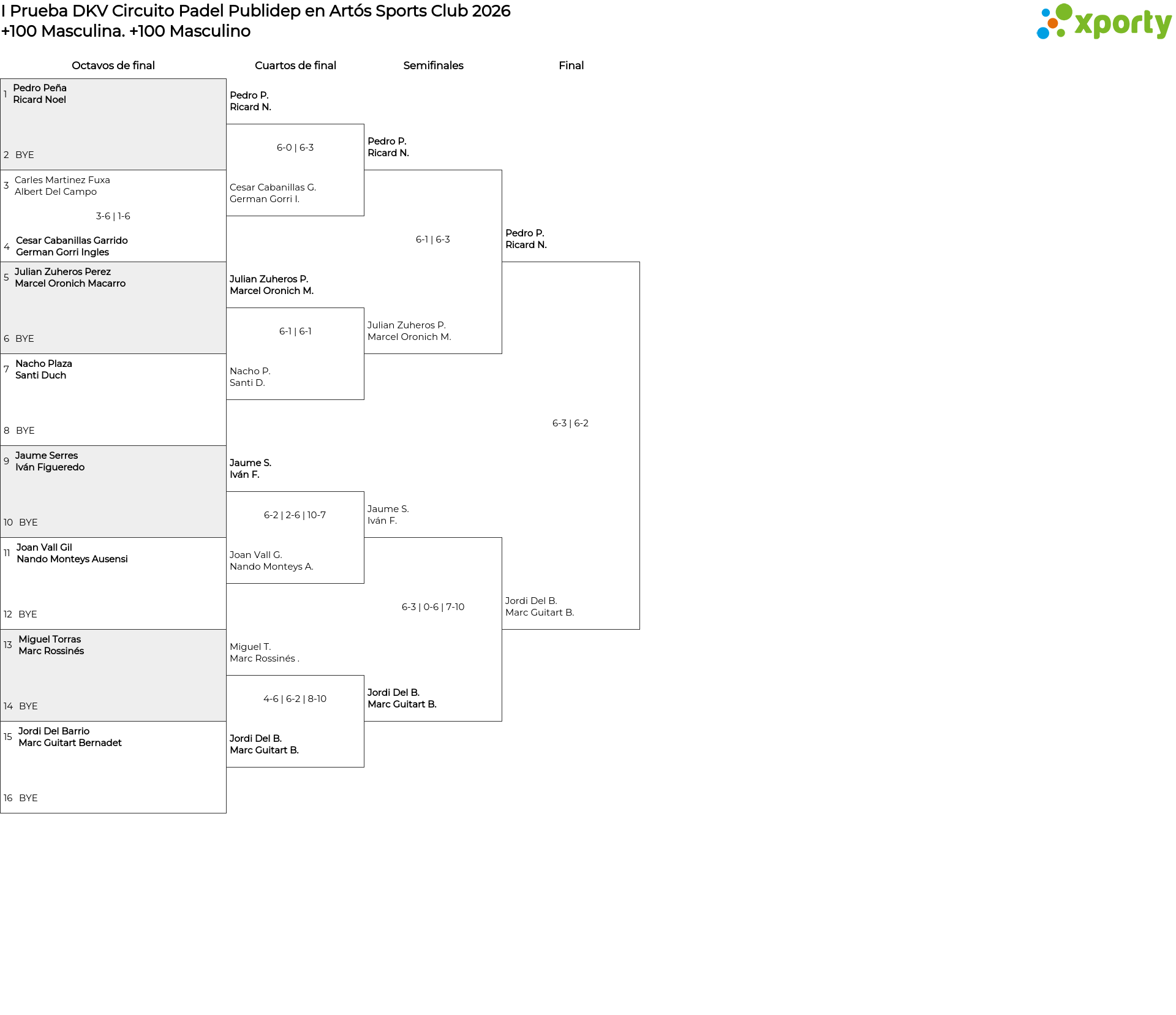 +100 Masculino main bracket