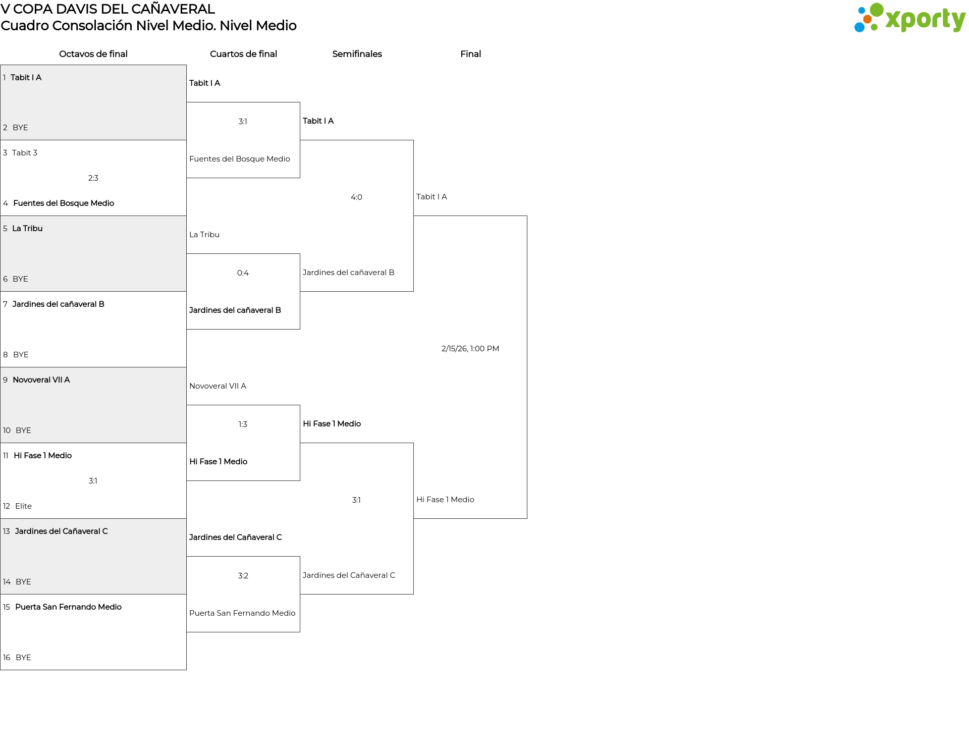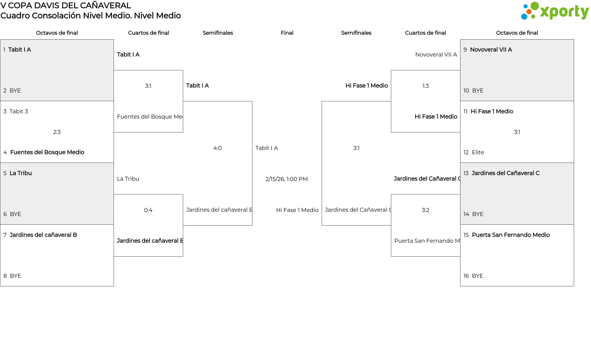 Fase de grupos Nivel Alto Cuadro Consolación Nivel Alto