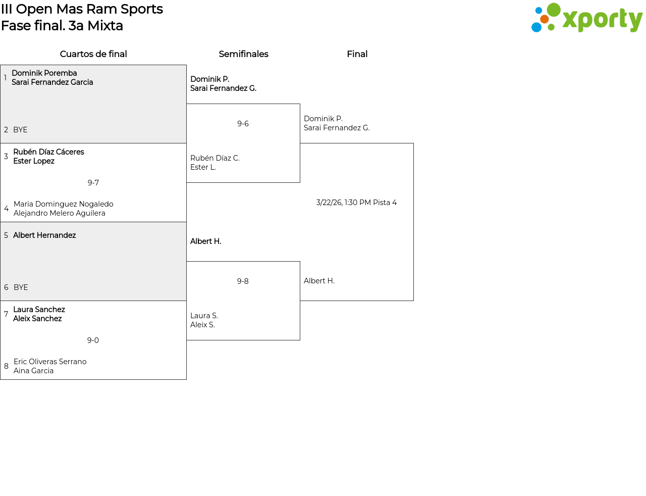 Cuartos de final (1 match/game)