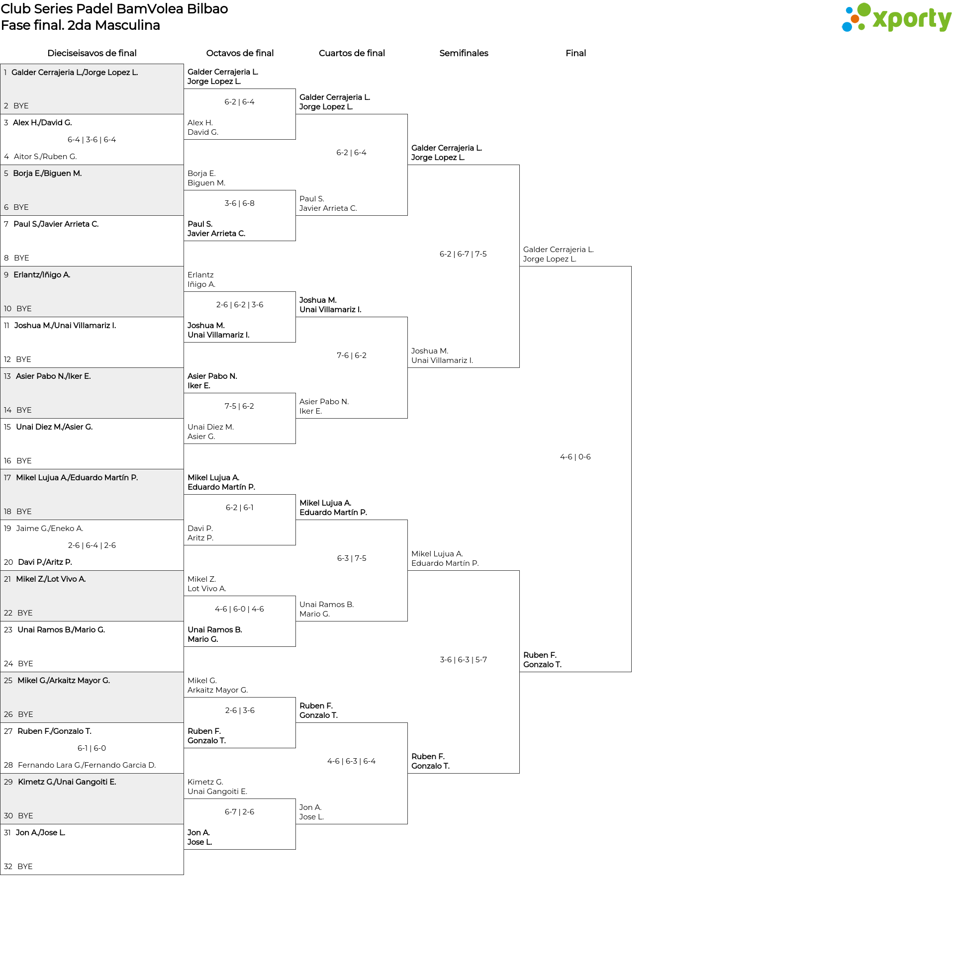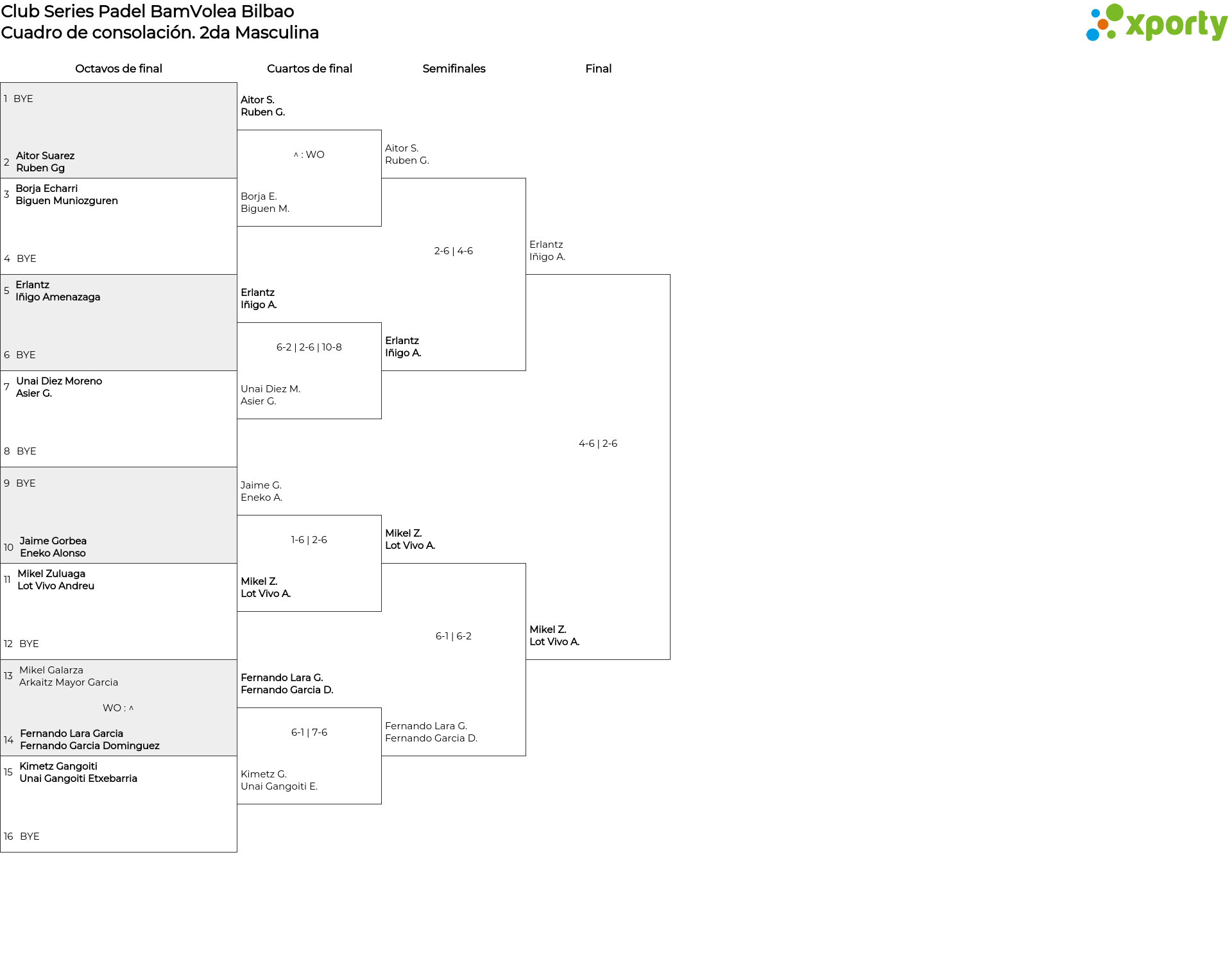 2da Masculina main bracket
