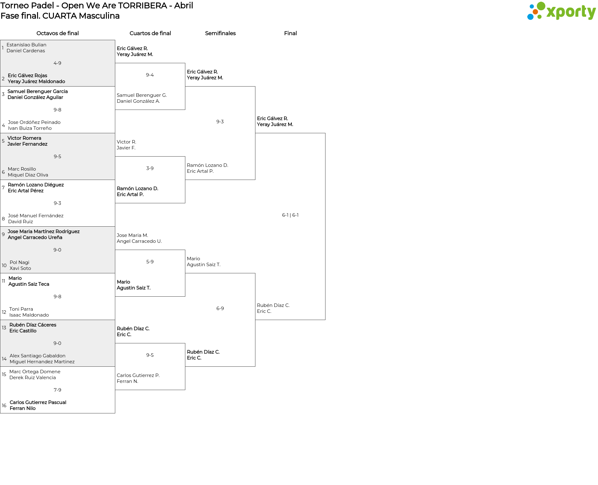 CUARTA Masculina main bracket
