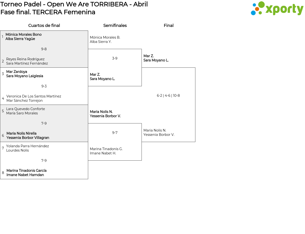 TERCERA Femenina main bracket