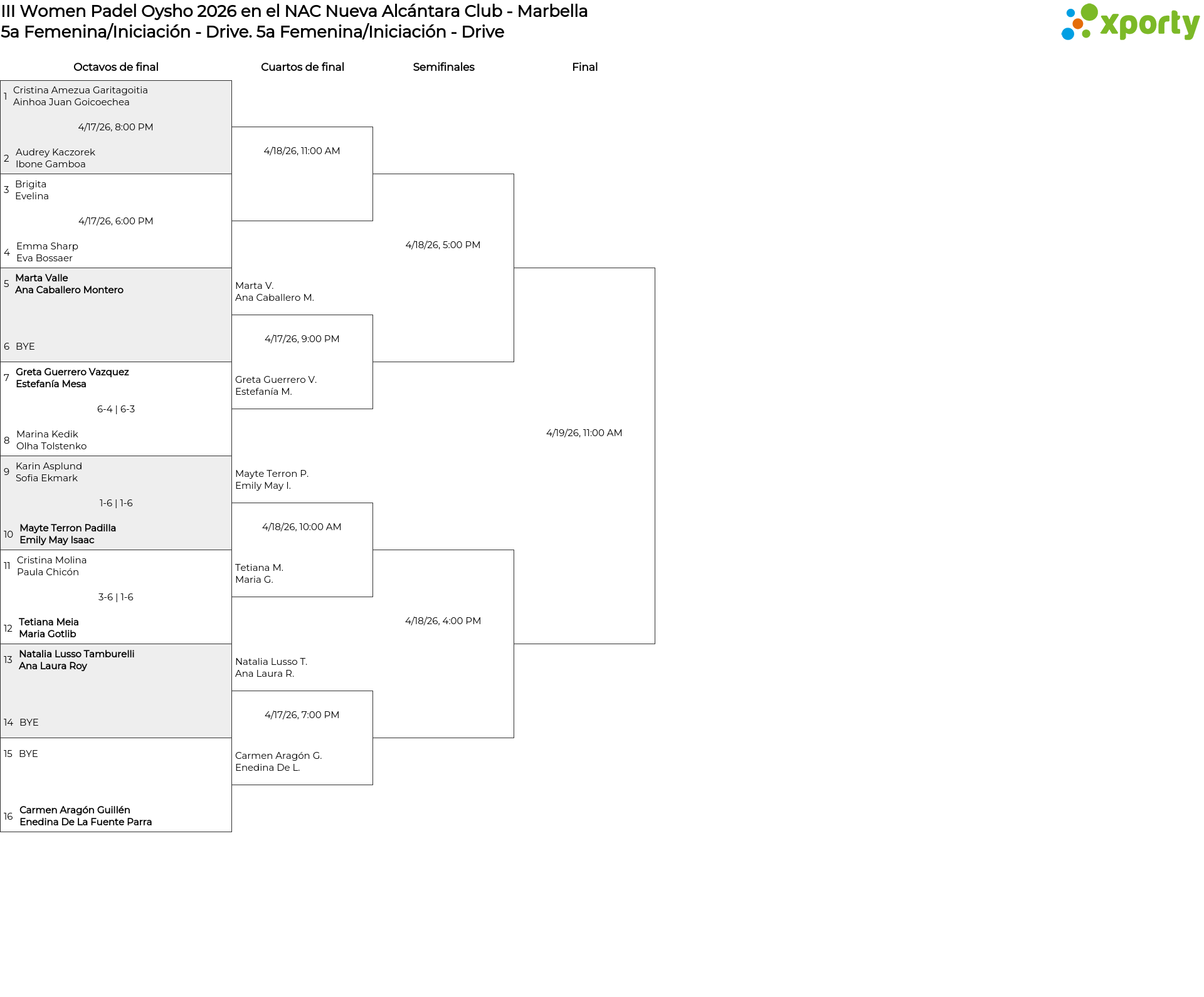 5a Femenina/Iniciación - Drive Cuadro de consolación