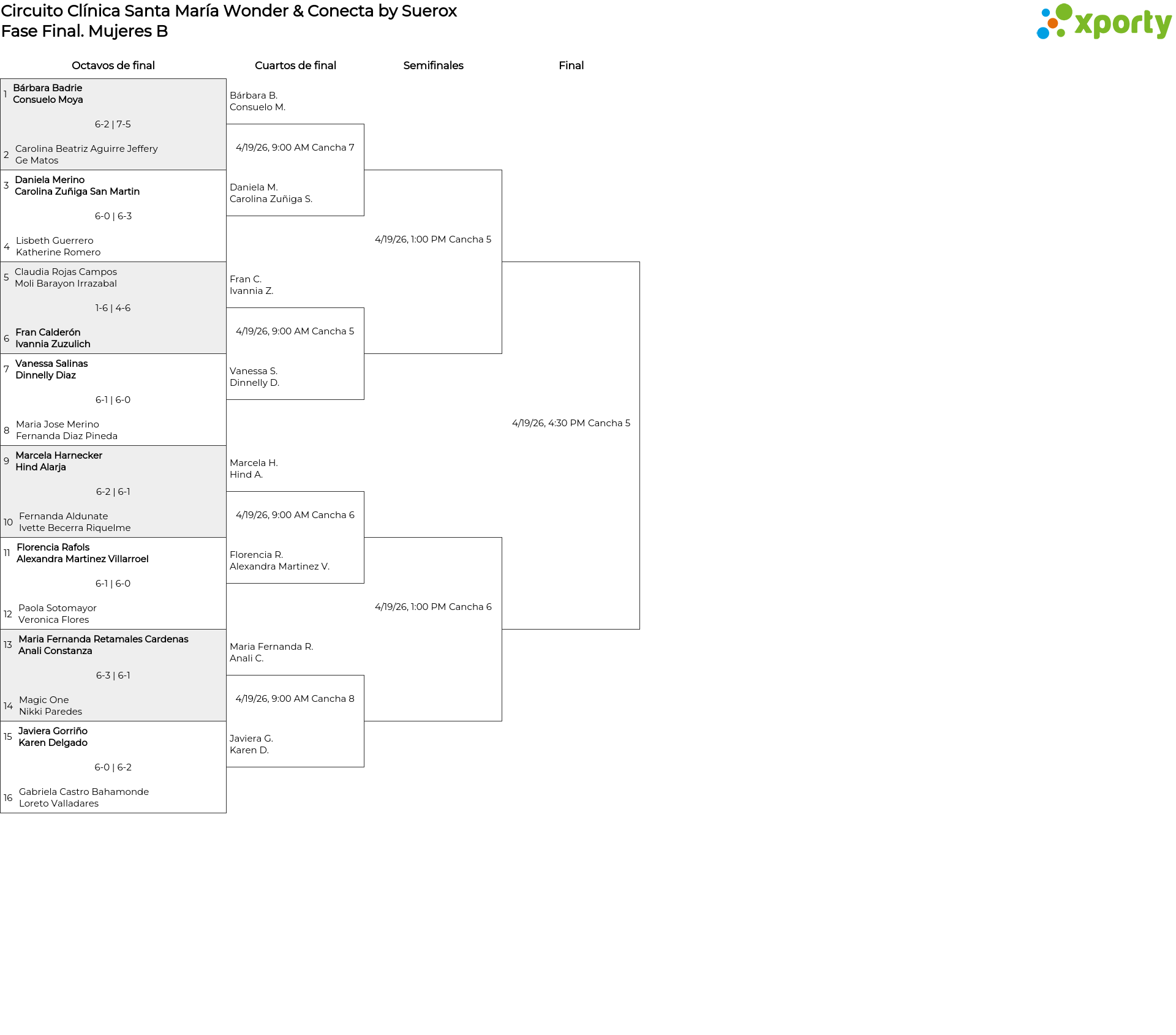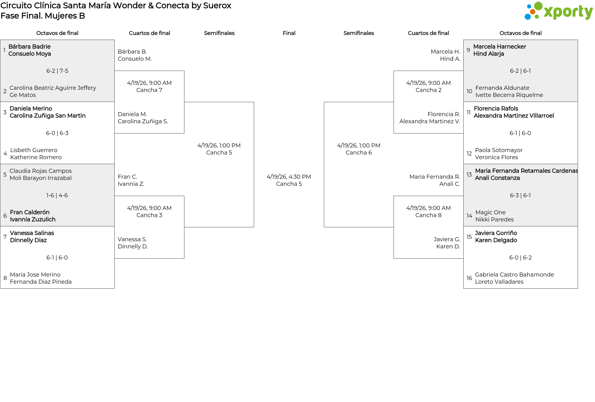 Mujeres B main bracket