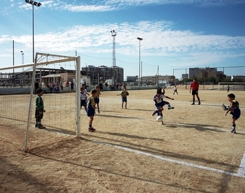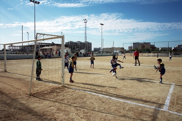 Dotación: 1 campo de fútbol de césped artificial, 1 campo de fútbol siete, 1 pista polideportiva, vestuarios, oficina, almacén, aseos públicos, ambigú, pozo de riego, cerramiento exterior e iluminación nocturna